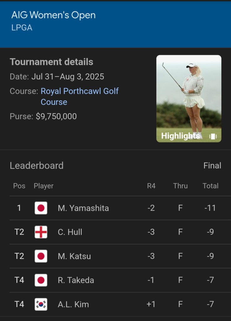 Japan’s Yamashita led all golfers most of the tournament with consistent bogey-free golf. She wasn’t big on distance. She didn’t lay out any high-powered drives to speak of at all. Round by round, she played consistently and steadily.