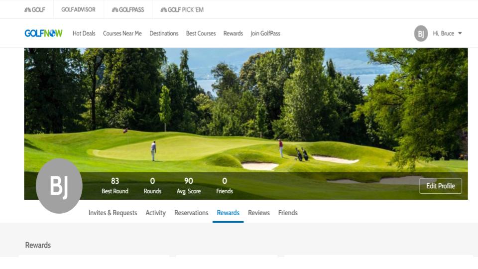 My Golf Now profile page